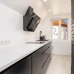 Eine voll ausgestattete Küchenzeile mit einem Toaster und einem Geschirrspüler ist im Paernu Old Town Apartment With Patio verfügbar.